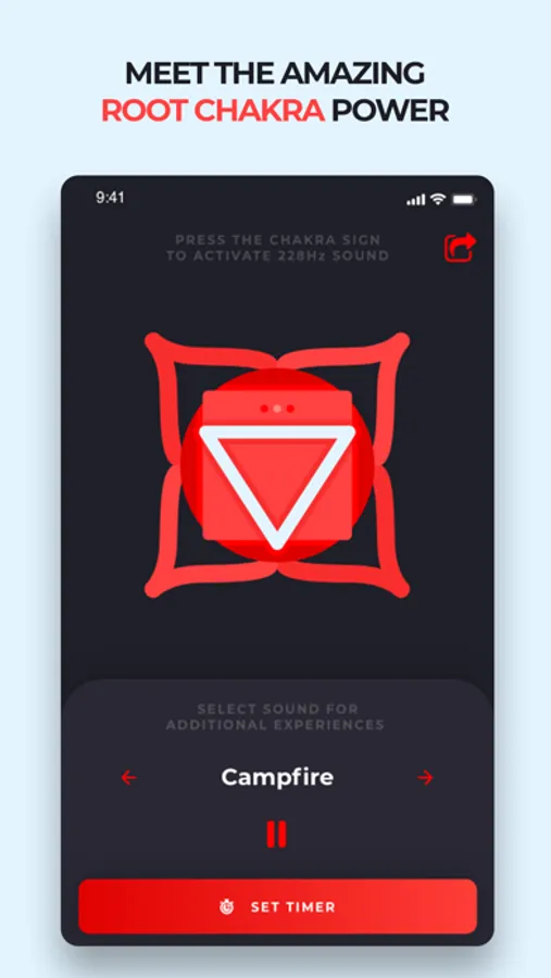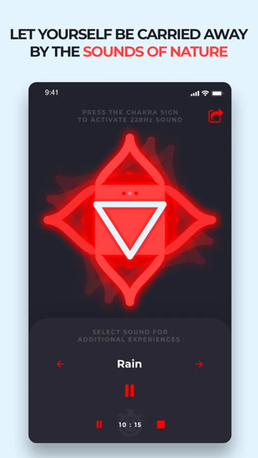 This application will allow you to play a 228 Hz sound that is activated when you click the chakra sign. This binaural isochronic tone can be made even more pleasant thanks to nature songs: