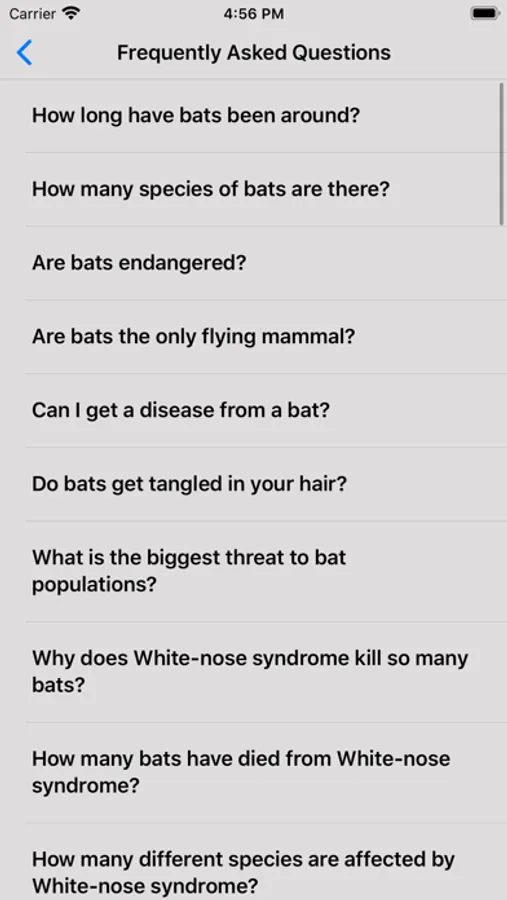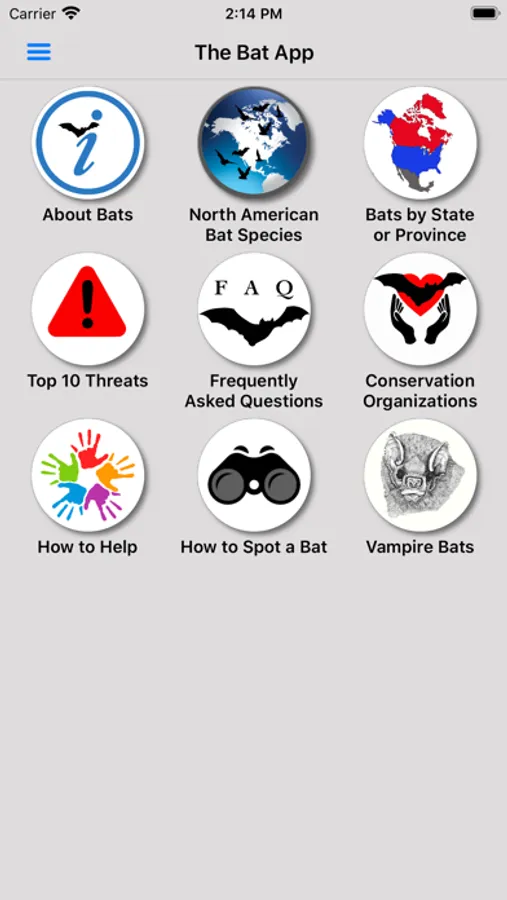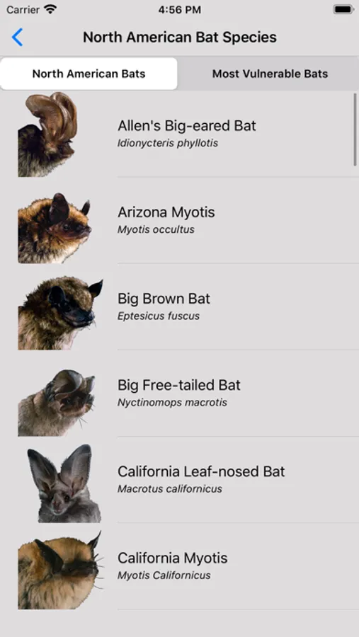 Next, you will be introduced to the 47 bat species living in North America. These bats will warm your heart, just wait. Many of the photographs in the app are contributed by famed bat ecologist, Dr. Merlin Tuttle, who has been photographing bats all over the world for over 60 years. There are many photos that are so extraordinary, you simply won't believe he was able to capture them.
