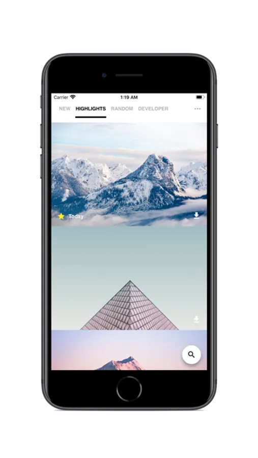Inspite of browsing photos from Unsplash, you can also search by a bunch of builtin keywords. Also, there is a section named "highlight" which is a photo collection updated everyday and picked by the developer himself and even taken too :D