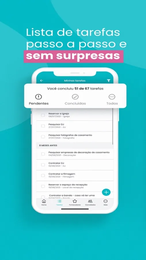 Em poucos cliques você gerencia todas as suas tarefas, fornecedores, orçamentos, contratos, pagamentos e convidados.