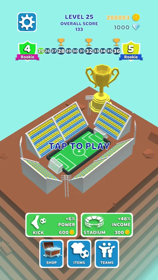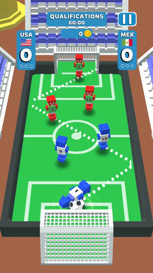 Experience the thrill of scoring the winning goal in Flip Goal - the ultimate soccer game! With intuitive controls and immersive gameplay, you'll master the timing of your kick to avoid hitting other players and lead your team to victory. Choose from a variety of teams! As you progress through the game, you'll collect coins that can be used to upgrade your soccer stadium, unlock new soccer balls, and more.