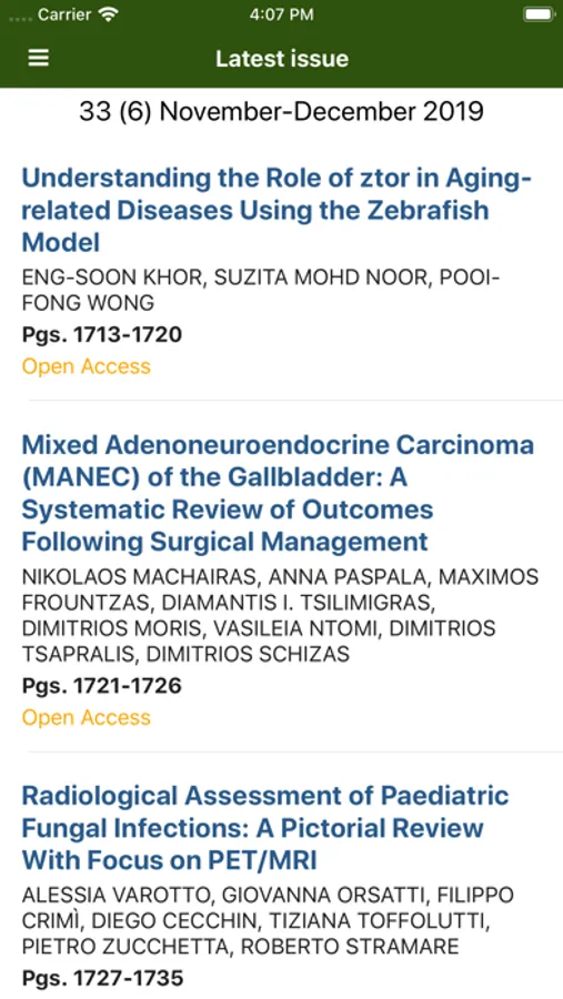 IN VIVO is published bimonthly online-only and open access from January 2017. Each annual volume contains six issues and index.