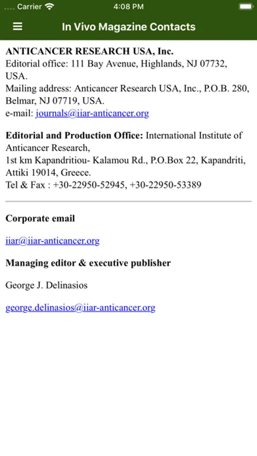 IN VIVO supports (a) the aims and research projects of the INTERNATIONAL INSTITUTE OF ANTICANCER RESEARCH and (b) the organization of the INTERNATIONAL CONFERENCES OF ANTICANCER RESEARCH.