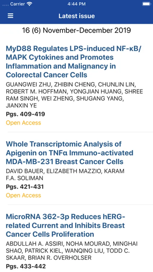 Cancer Genomics & Proteomics appears bimonthly as an online-only open access journal through the Stanford University HighWire Press. Each annual volume contains six issues and index.