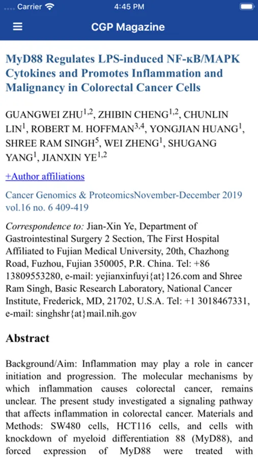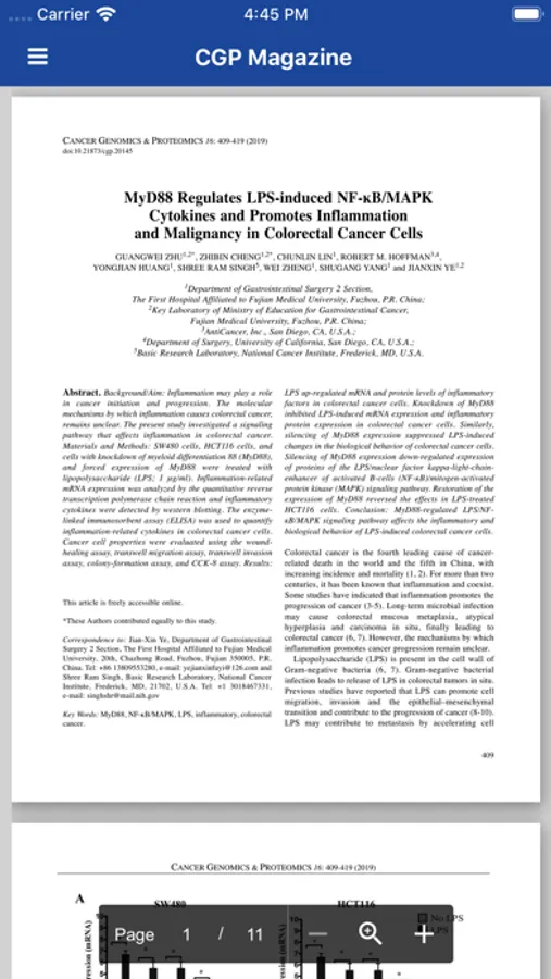Cancer Genomics & Proteomics (CGP) is an international open access bimonthly journal designed to publish rapidly high quality articles and reviews on the application of genomic and proteomic technology to basic, experimental and clinical cancer research. In this site you may find information concerning the editorial board, editorial policy, issue contents, submission of manuscripts. The first issue of CGP circulated in January 2004.