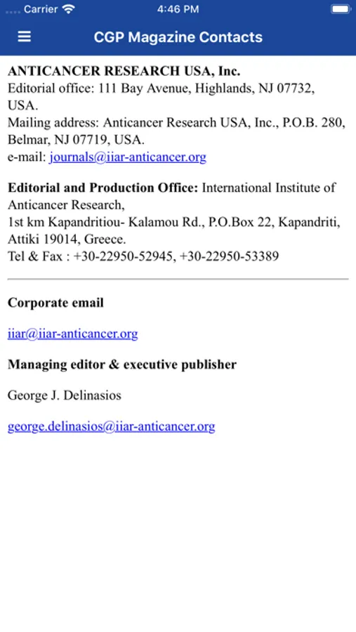 Cancer Genomics & Proteomics supports (a) the aims and the research projects of the INTERNATIONAL INSTITUTE OF ANTICANCER RESEARCH and (b) the organization of the INTERNATIONAL CONFERENCES OF ANTICANCER RESEARCH.