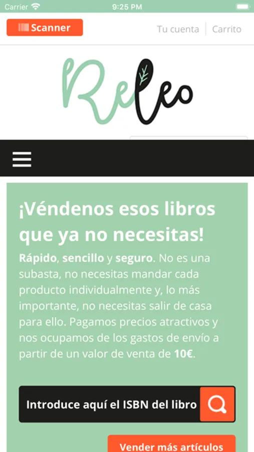 1. Escanea el código de barras del libro o introduce su ISBN. A continuación te dirá si lo compramos y cuanto te ofrecemos por él.
