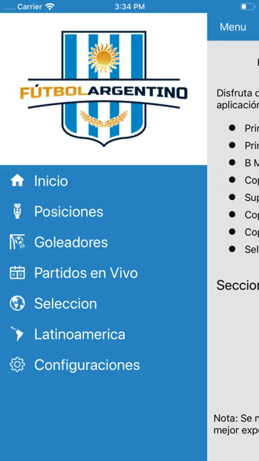 With this App of Argentine soccer you will be able to follow live all the soccer games of Argentina totally free. Also the games of the greater selection and the international competitions like the Copa Libertadores are offered. You can keep up to date with all the information about the most important competitions in Argentina: standings, scorers and much more.