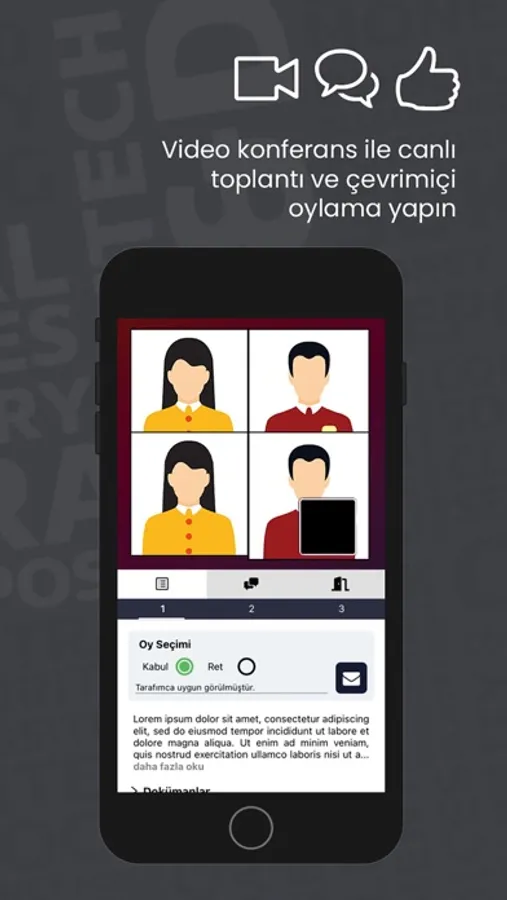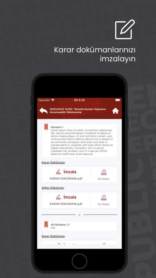 e-YKS application provides convenience to board of directors to join board meetings from their mobile devices and tablets. e-BDS enables the members of the board of directors to make a live connection to the meetings of the board of directors and to provide opinions from anywhere, regardless of their location. Also they can preview and sign decision documents with mobile signature by using this application.