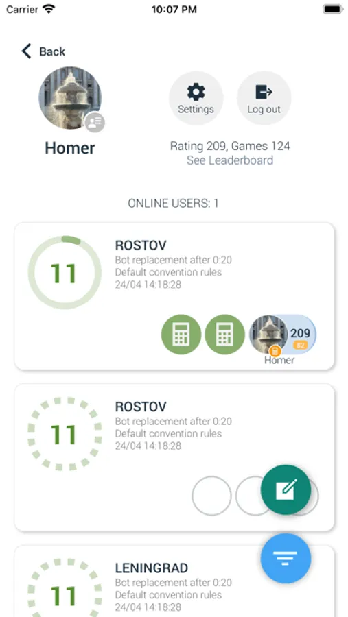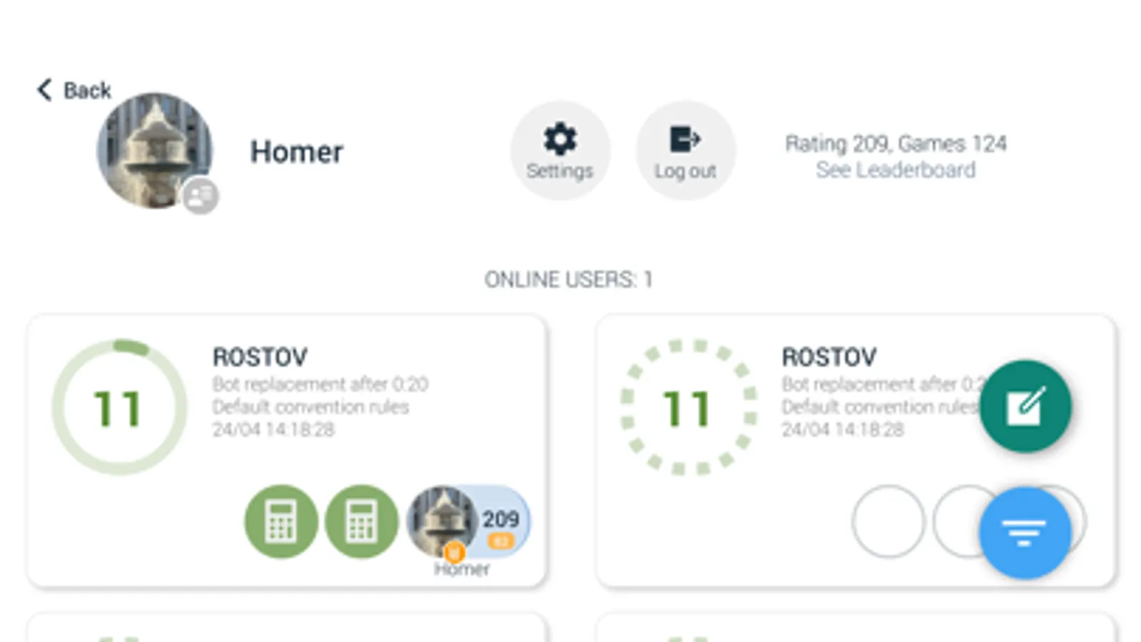 Advanced convention settings and online game with friends or pro-bots is provided with a free trial period.