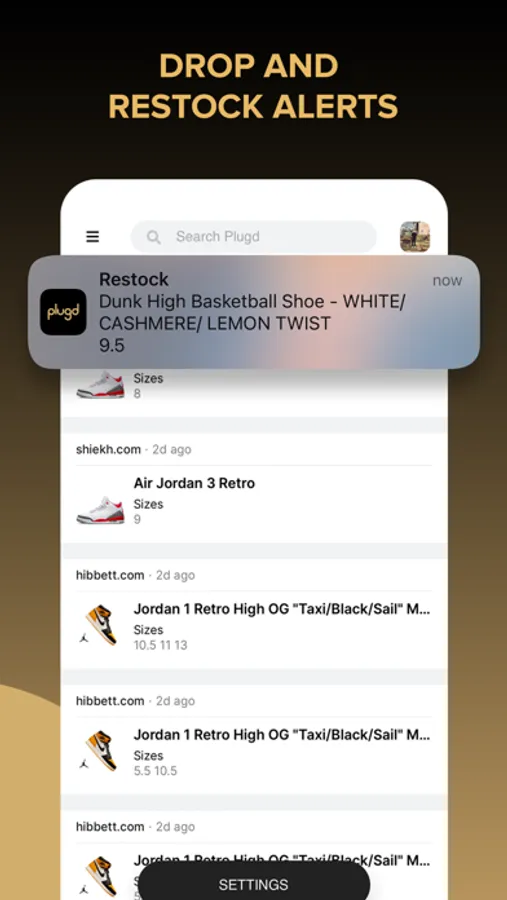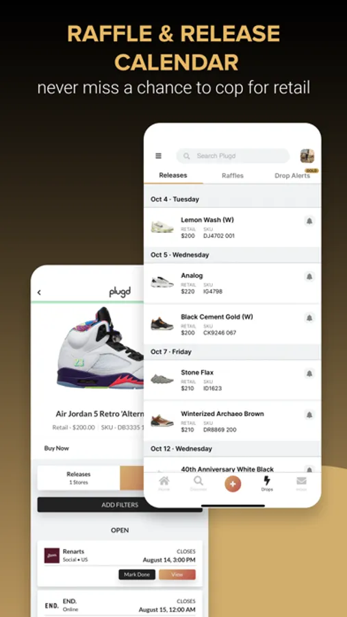 Get up-to-date launch information on all the latest hyped sneaker drops and releases. Plugd is Integrated with over 100 retailers to notify you on drop information so you can maximize your chances of copping sneakers for retail! The store list includes SNKRS, Adidas Confirmed, Yeezy Supply, Nice Kicks, END, Nordstrom, and more.