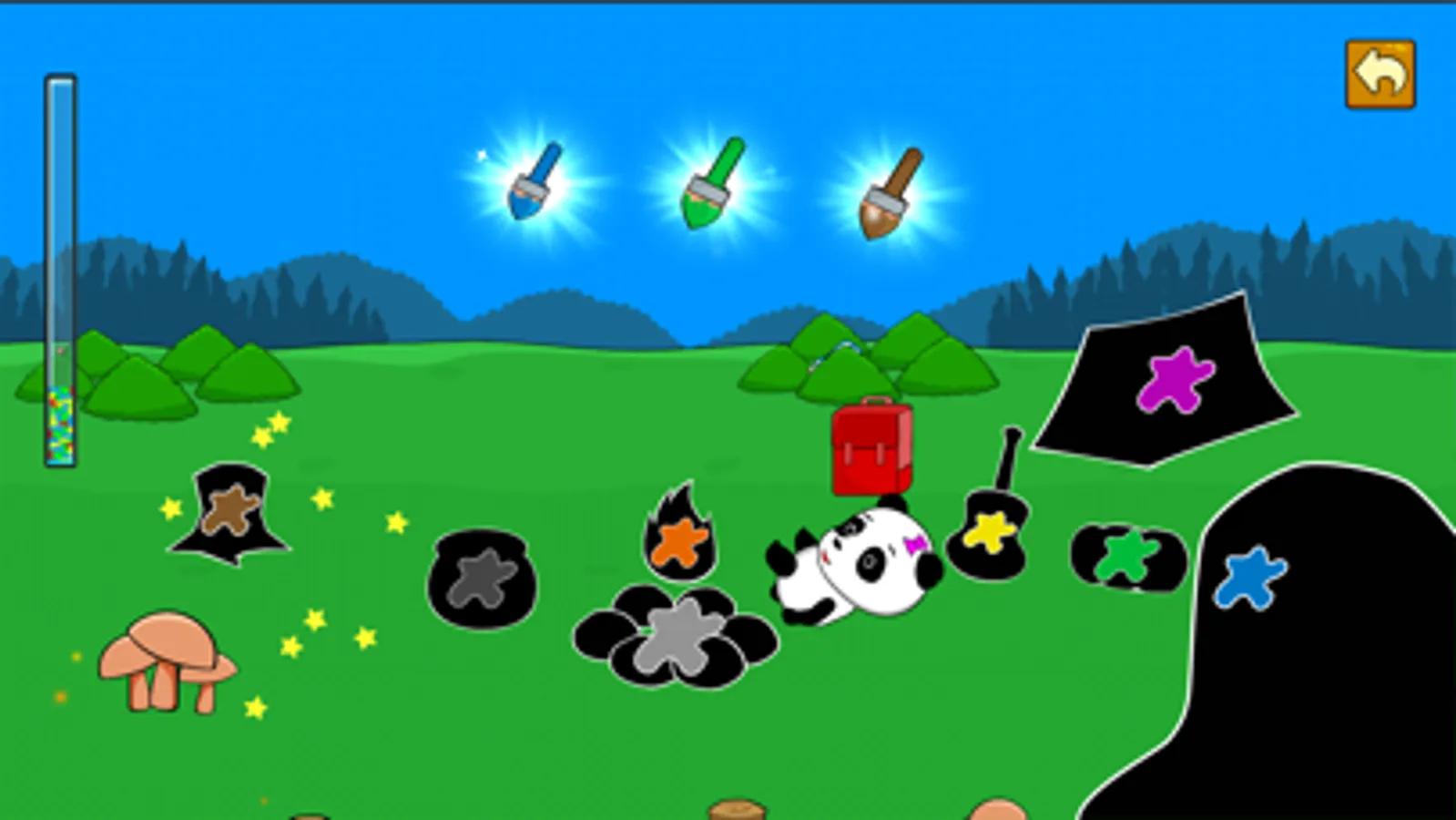 All along the way are the fun and friendly panda that rewards the player with a happy dance when the right answer is provided. Every scene is unique with interactable environment, fun music and sound effects. This app includes the following.