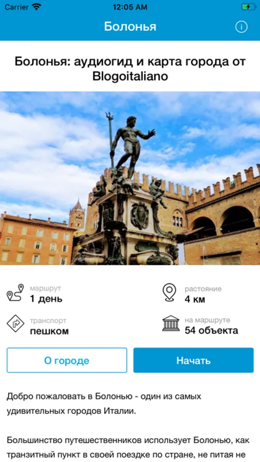 Аудиогид «Болонья: Путеводитель и Карта» – это готовая аудио экскурсия по историческому центру столицы Эмилии-Романьи, которая поможет Вам охватить в городе гораздо больше, чем успевает 95% путешественников и при этом существенно сэкономить на услугах гидов.