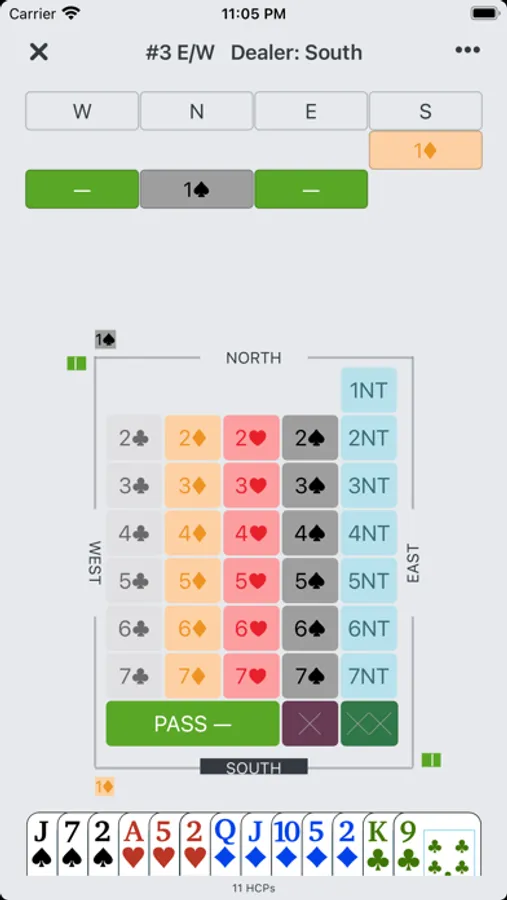 With an iPhone or iPad, there are three AI robots stay with you in the PVBridge APP. They would like to play the contract bridge game with you anytime and anywhere.
