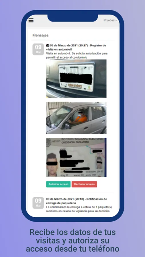 Nosotros te ofrecemos solucionar eso con una app que te permita aprobar o rechazar visitas desde tu celular, recibir llamadas sin que tu teléfono lo conozca el personal de seguridad para mantener tu privacidad, grabar las llamadas para que sepas quién autorizó, registrar visitas recurrentes o personal de servicio. Eso y mucho más.