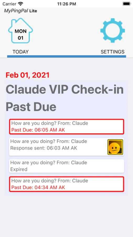This app provides a simple way for your loved one to check in and verify their well being. Your account will have:
