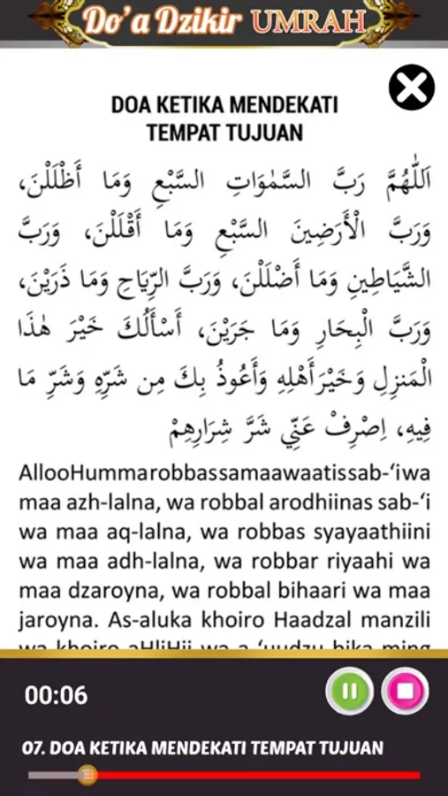 Doa Dzikir Umroh berisi kumpulan audio dan teks doa manasik umroh yang dapat memudahkan para jemaah umroh untuk menghafalnya. aplikasi doa dzikir umroh ini dapat dijadikan sebagai media untuk bekal umroh anda agar anda lebih mudah dalam menjalankannya.