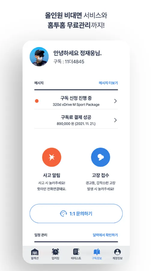 자동차 뿐만 아니라 정기적인 점검과 세차 등의 관리서비스도 함께 제공해요.