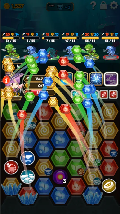 Shuffle blocks, blow them wide, erase enemies, or reflect damage.