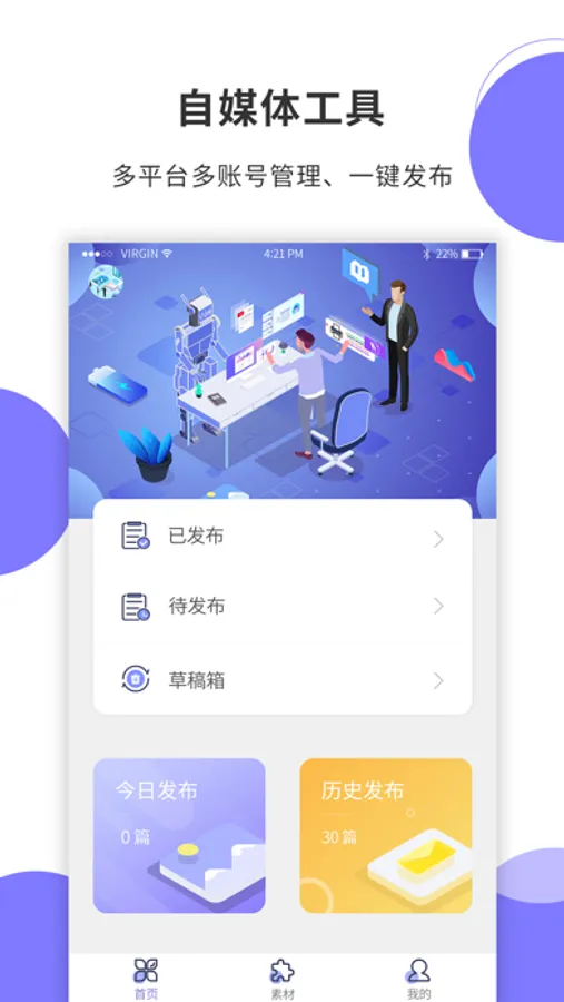 度小智自媒体是一款新媒体账号管理软件,为个人及企业提供多平台多账号管理、编辑发布的新媒体服务,官方素材轻松同步,多平台素材集中管理,支持多平台多账号定时/立即发布,并实时监控内容效果。