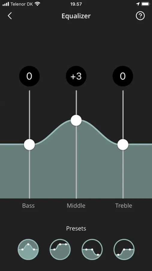 - Adjust the pitch of the sound (bass, middle and treble) using the equalizer