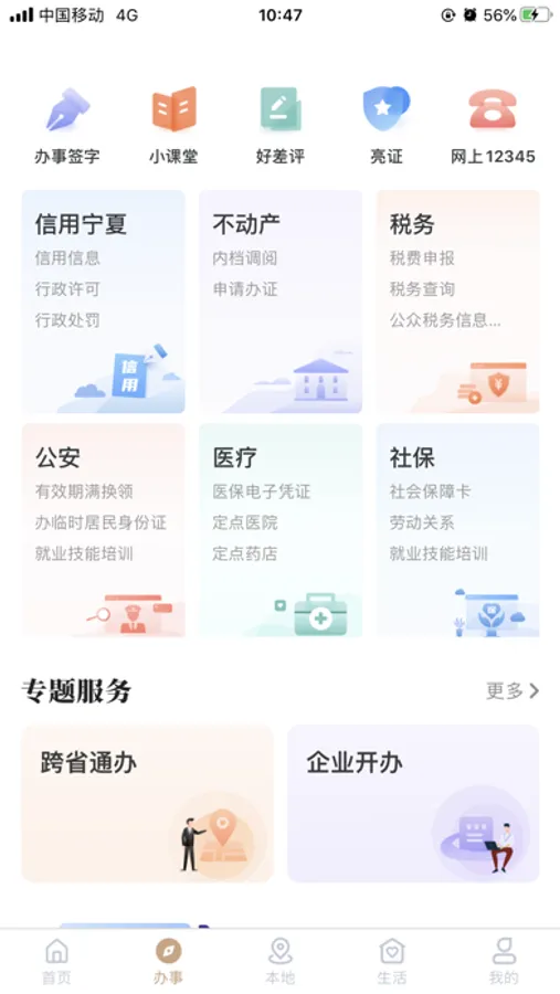 “我的宁夏”是一款集成各类政务事项和生活服务的移动端软件,能让市民便捷地移动办事、轻松地随手查询、方便地在线咨询,享受智慧生活。