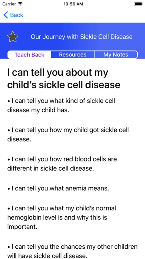 The Our Journey with Sickle Cell app is designed to:
