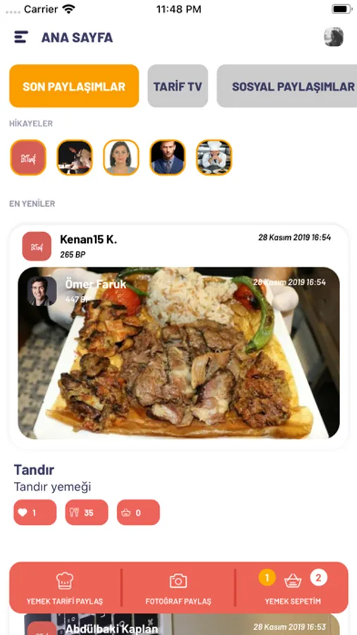 —Anlık yemek hikayelerinizi paylaşabilirsiniz.