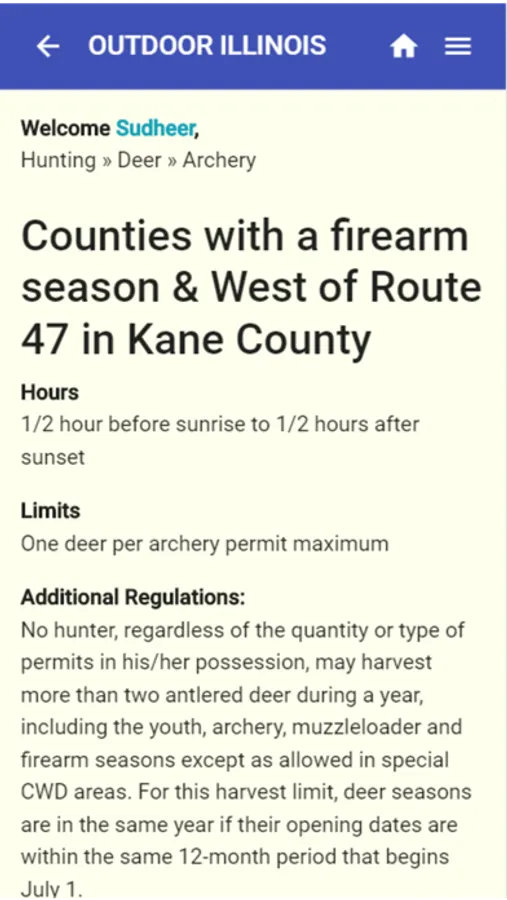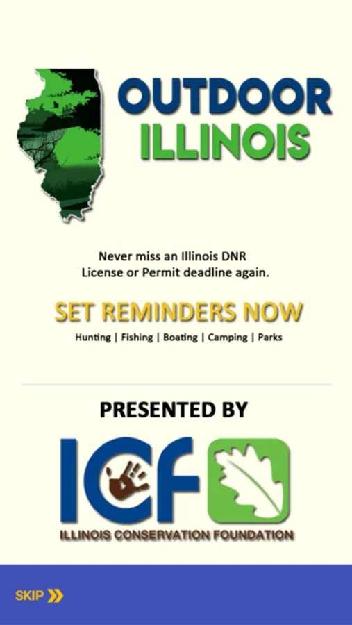 Outdoor Illinois is presented by Illinois Conservation Foundation (ICF). It is an app intended to provide Outdoor Enthusiasts information related to Game and Fishing activities in the State of Illinois. It reflects the Department of Natural Resources Hunting and Fishing Digest providing the capability to set reminders on season schedules and application deadlines.