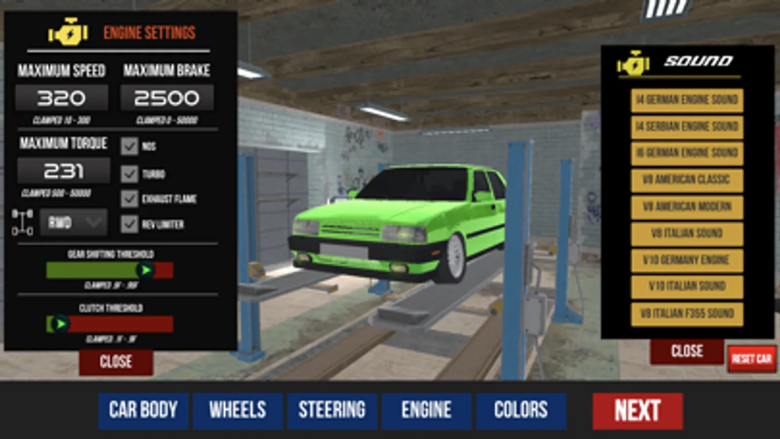 Bu oyunumuzda gerçeğiyle aynı özellik ve performanslara sahip şahin model araç kullanacaksınız.Garajda başlayan oyunumuz, sizlere şu özellikleri sunmaktadır: