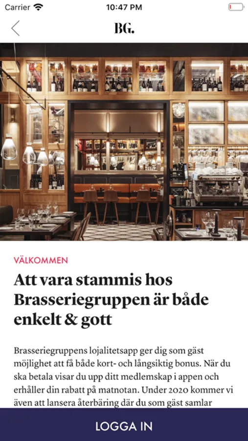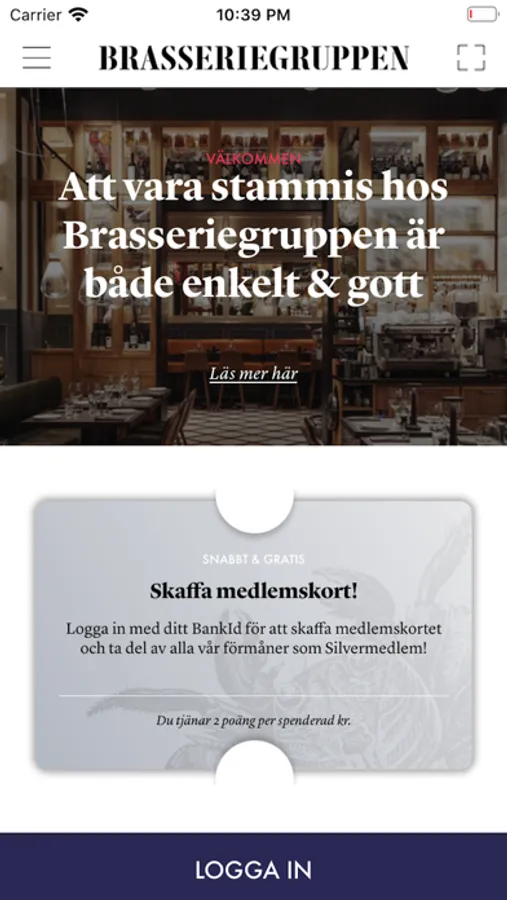Brasseriegruppens lojalitetsapp ger dig som gäst möjlighet att få både kort- och långsiktig bonus. När du ska betala visar du upp ditt medlemskap i appen och erhåller din rabatt på matnotan. Under 2020 kommer vi även att lansera återbäring där du som gäst samlar poäng för varje spenderad krona på någon av våra restauranger. Det kan inte bli ett smidigare sätt att bli stamgäst på.
