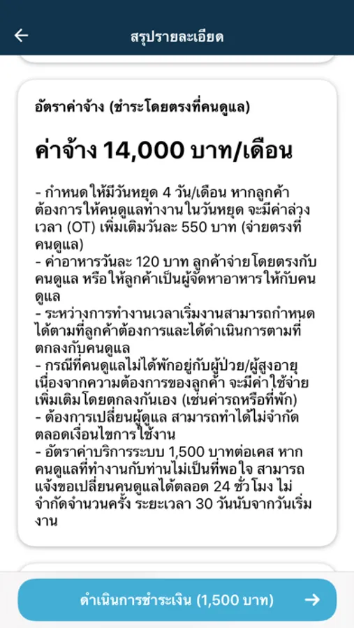 เพียงแค่คุณกำหนดคุณสมบัติคนดูแลที่ต้องการ ระบบจะส่งงานไปยังคนดูแลที่มีคุณสมบัติเหมาะสมทุกคน และคุณสามารถโทรคุยในรายละเอียด ก่อนยืนยันการจ้างงานได้ ที่สำคัญ ในกรณีที่คุณต้องการเปลี่ยนคนดูแล ก็สามารถทำได้ไม่จำกัด