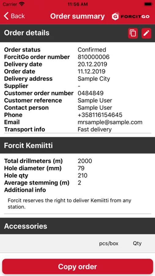 Forcit Go is and application for the customers on Oy Forcit Ab in Finland and in Sweden. The app can be used managing orders and seeing the delivery times.