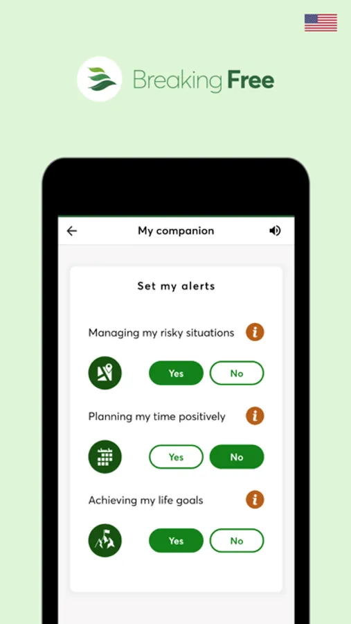 The Breaking Free Companion app is designed to be used alongside the American version of Breaking Free Online, the award-winning treatment and recovery program for alcohol and drugs that is accessed at www.breakingfreeonline.us.