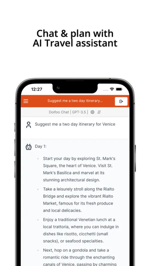 Doifoo Chat is powered by ChatGPT 3.5 API, which gives you complete access to itinerary preparation, and knowing places, for asking any question related to travel and beyond.
