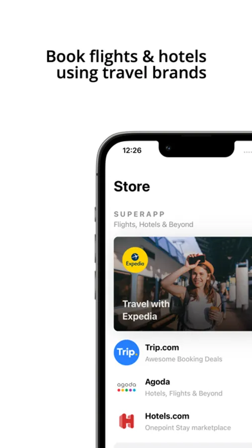 * Travel store integrates all your favorite brands, with which you can book via our partners alongside Flight check-ins and Tourist visas.