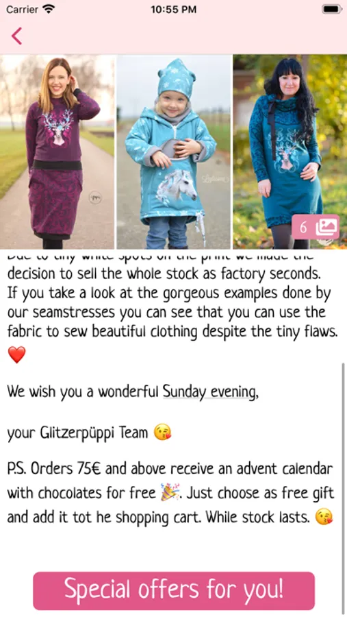 If you use the Glitzerpüppi-App you will be up to date at all times thanks to our App-Newsletter and get access to exclusive sales and discounts! Our App will receive continued support and expand over time. You can look forward to learn more about the revolutionary service we are working on for you.