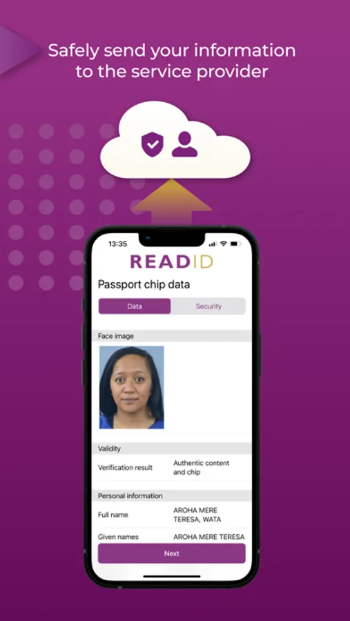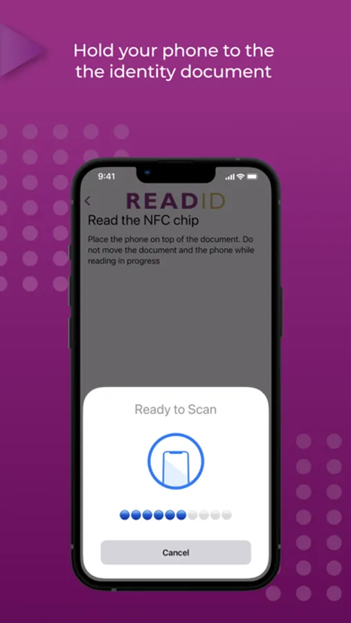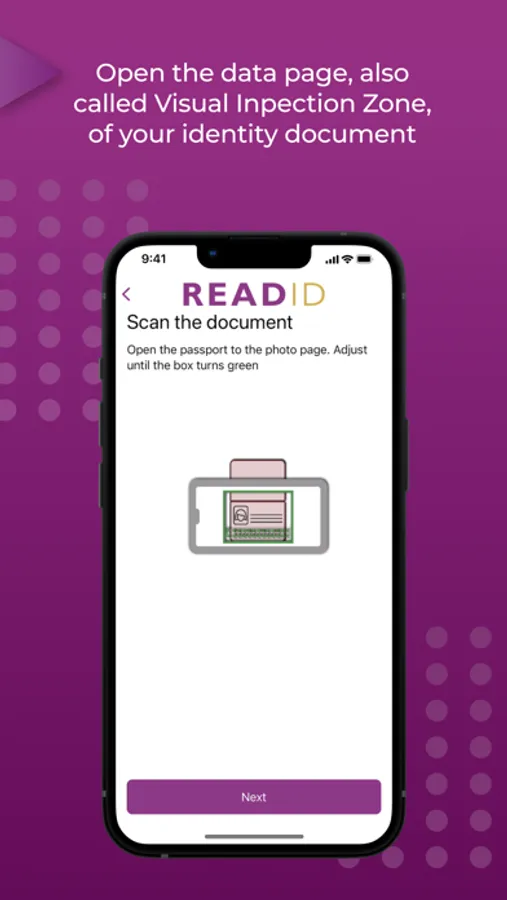 ReadID Ready is an application for mobile identity document verification. By reading the chip in your identity document, ReadID Ready can verify your document is an authentic identity document. To get access to the chip in your identity document, the app will first scan the so-called Machine Readable Zone (MRZ) of your identity document since this contains the password to get access to the chip. The verification results will be shared with the organisation that asked you to use ReadID Ready. You can only use ReadID Ready when a third party wants to verify your identity. You will receive a request and instructions (with a QR code and/or link) to do this.