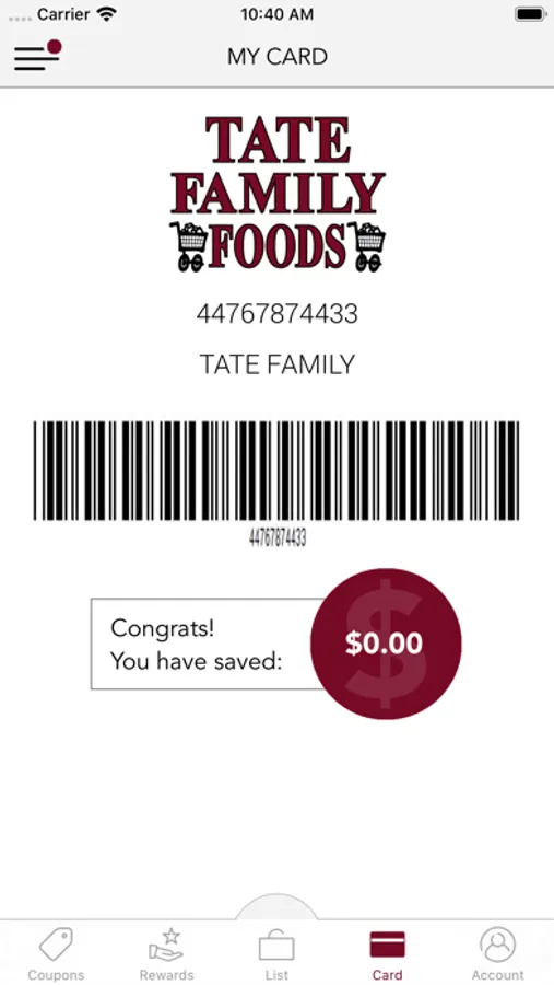 The Tate's Family foods app is the best way for our loyal shoppers to receive savings every time they come in to the store! It's as simple 1, 2, 3:
