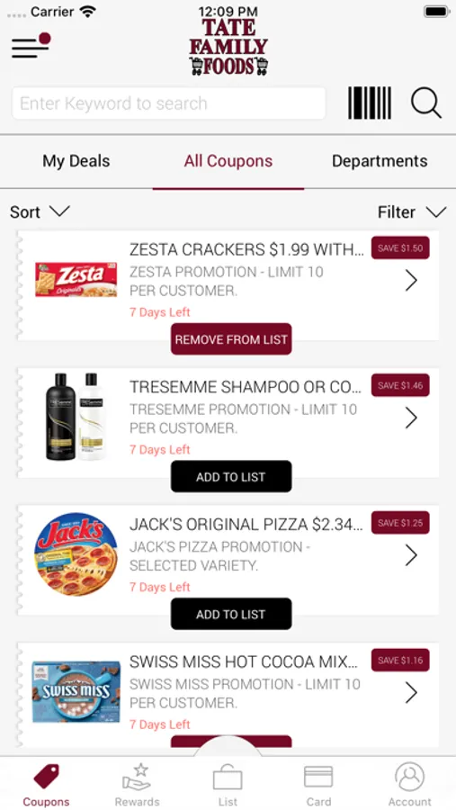 Claim as many coupons as you want with one simple scan! No more searching through mailers or printing out emails, Tate's Family foods is bringing rewards right to your mobile device!