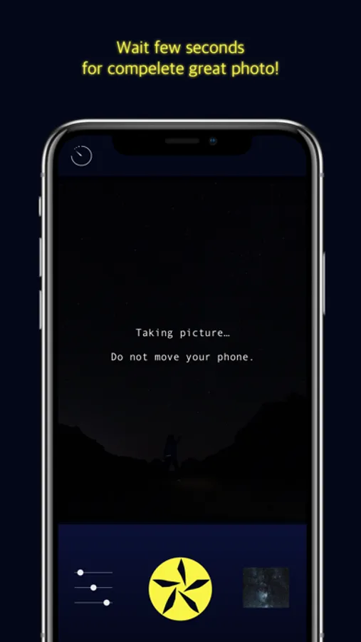 This camera app is based on long exposure feature so stabilize your phone for a few seconds during the taking picture. Then you can get a great photo.