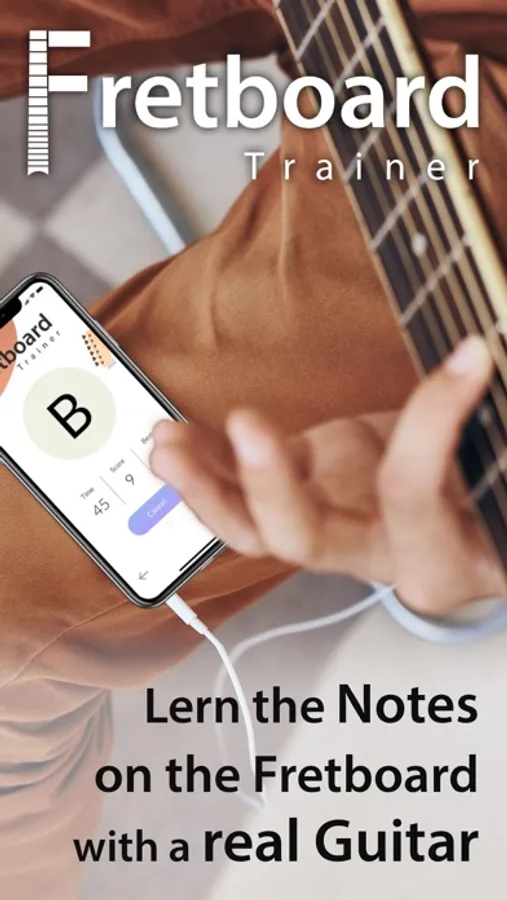 Instead of learning the Notes on a virtual Fretboard Image on the Screen you can use your real Guitar.
