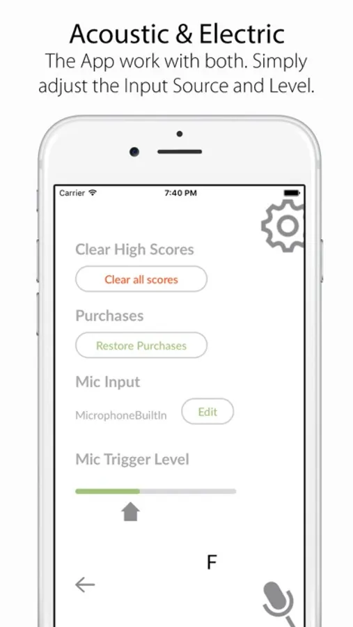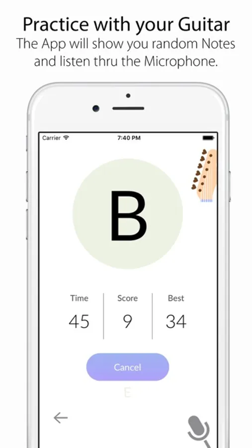 If you play the correct note the App will ask for another random note and gives you one point. If you play a wrong string one point will be deducted.