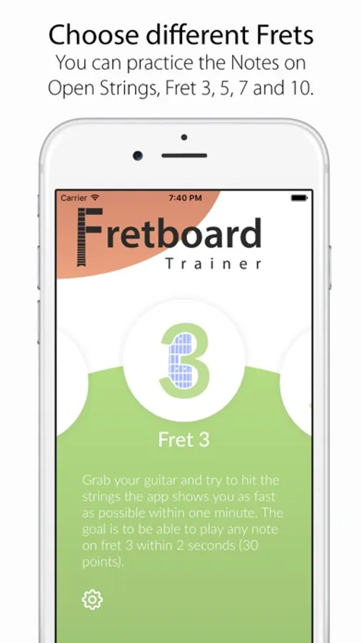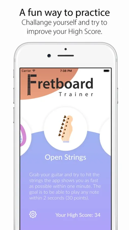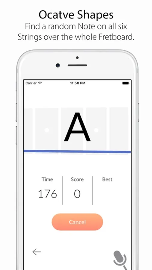In the Octave Shapes practice the app shows you a random note and asks you to find it on all 6 Strings. You have 3 Minutes to get as many Notes correct as you can.