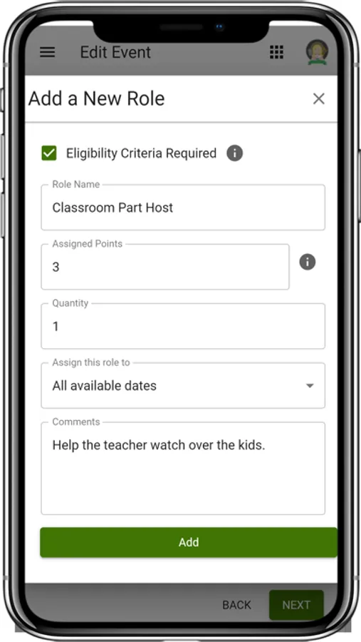 - Points / Hours Tracking – event creators dictate points and hours for participation with NO need for volunteers to submit hours