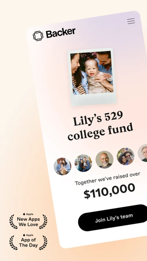Studies have shown that having even a bit of college savings can propel a young person toward the college of their dreams. With Backer, you can supercharge this effect by building a team of supporters (“backers”) for your kid.