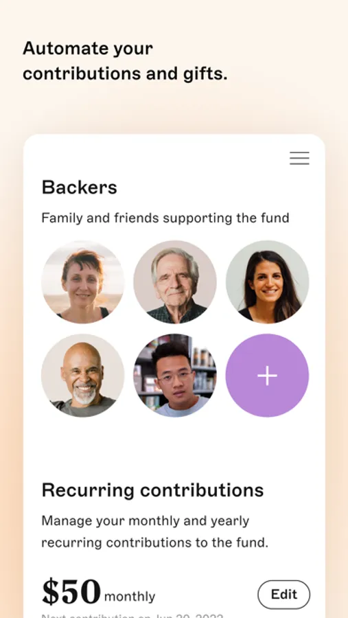 Every fund has a custom link that’s easy to share, so family & friends can contribute. Think birthdays, holidays... Wednesdays. And you can keep your backers engaged by sharing family updates all year round.