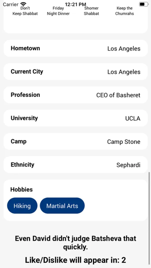 Basheret is a traditional Jewish dating app. The app is based on a deep knowledge of the community, so there's no swiping, questions are targeted towards the interests of Jews, you can set up your friends.
