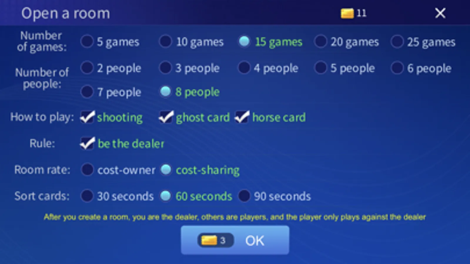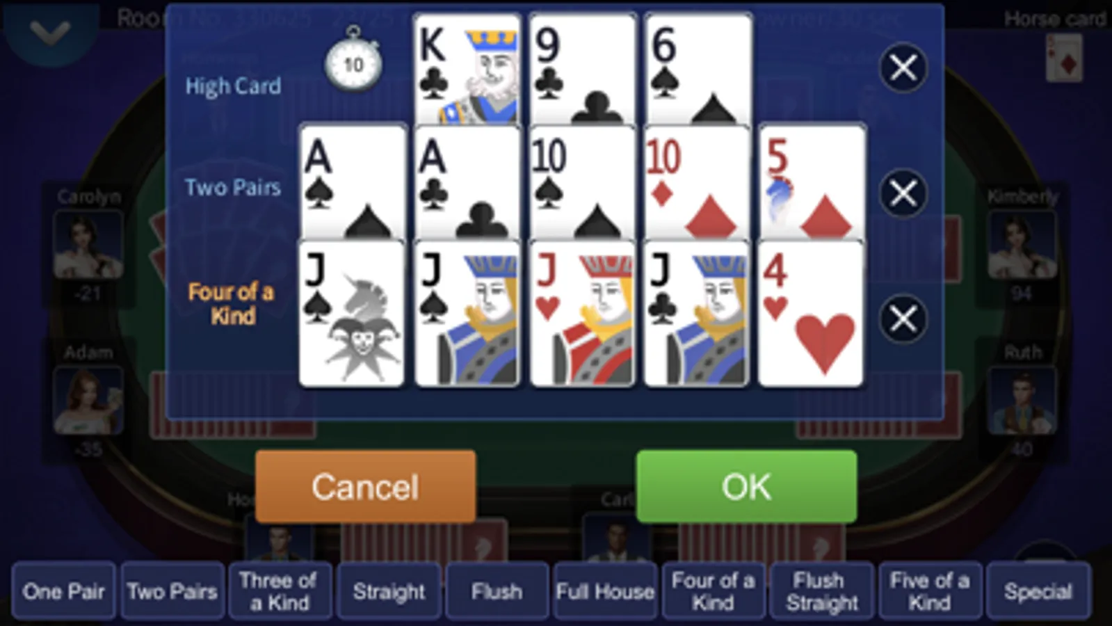 The Chinese poker game based on fair and just rules, in order to provide players an environment of fair play, Homerun strives to ensure the random of cards.