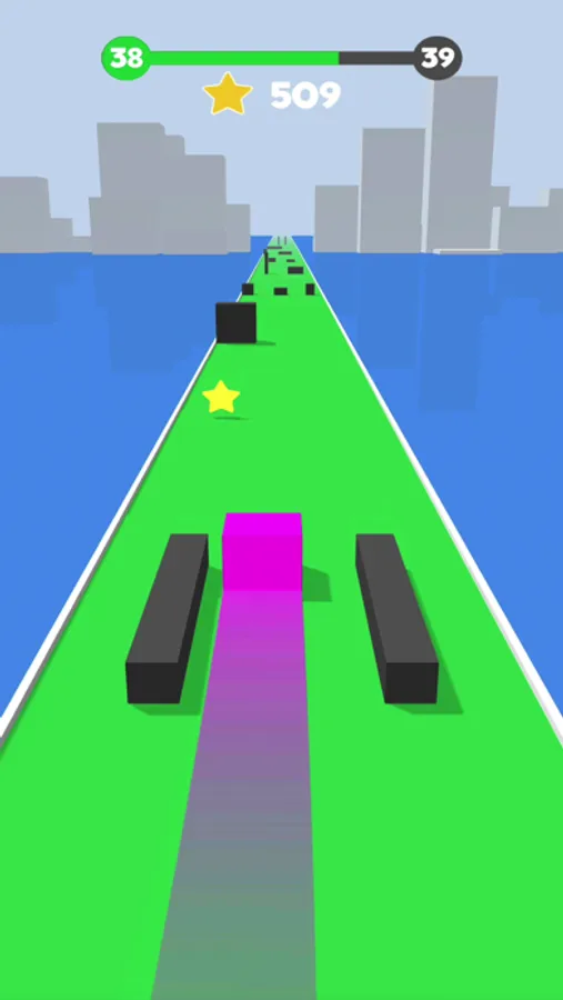 Speed race from level to level trying to get to the finish line without taking any damage. How fast can you go without getting sliced into pieces?